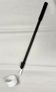 The Mosquito Dipper for Larvae and Pupae (Model 320) is a telescoping water sampling dipper primarily intended for use by vector control field technicians for the purpose of testing water sources for the presence of mosquito larvae and pupae; the total weight of the dipper is 10 oz (280 g). The shaft is made of heavy-duty anodized aluminum and is 30″ (76 cm) long when compact and 66″ (169 cm) long when fully extended. The dual locking clasps make it easy to set the device length as needed for a sturdy hold. Double reinforced rivets at the neck hold the white powder coated stainless steel cup firmly in place. The white powder coating makes larvae recognition a snap. The cup volume is 10 oz (300 ml). The hand grip is padded to allow for a firm hold.